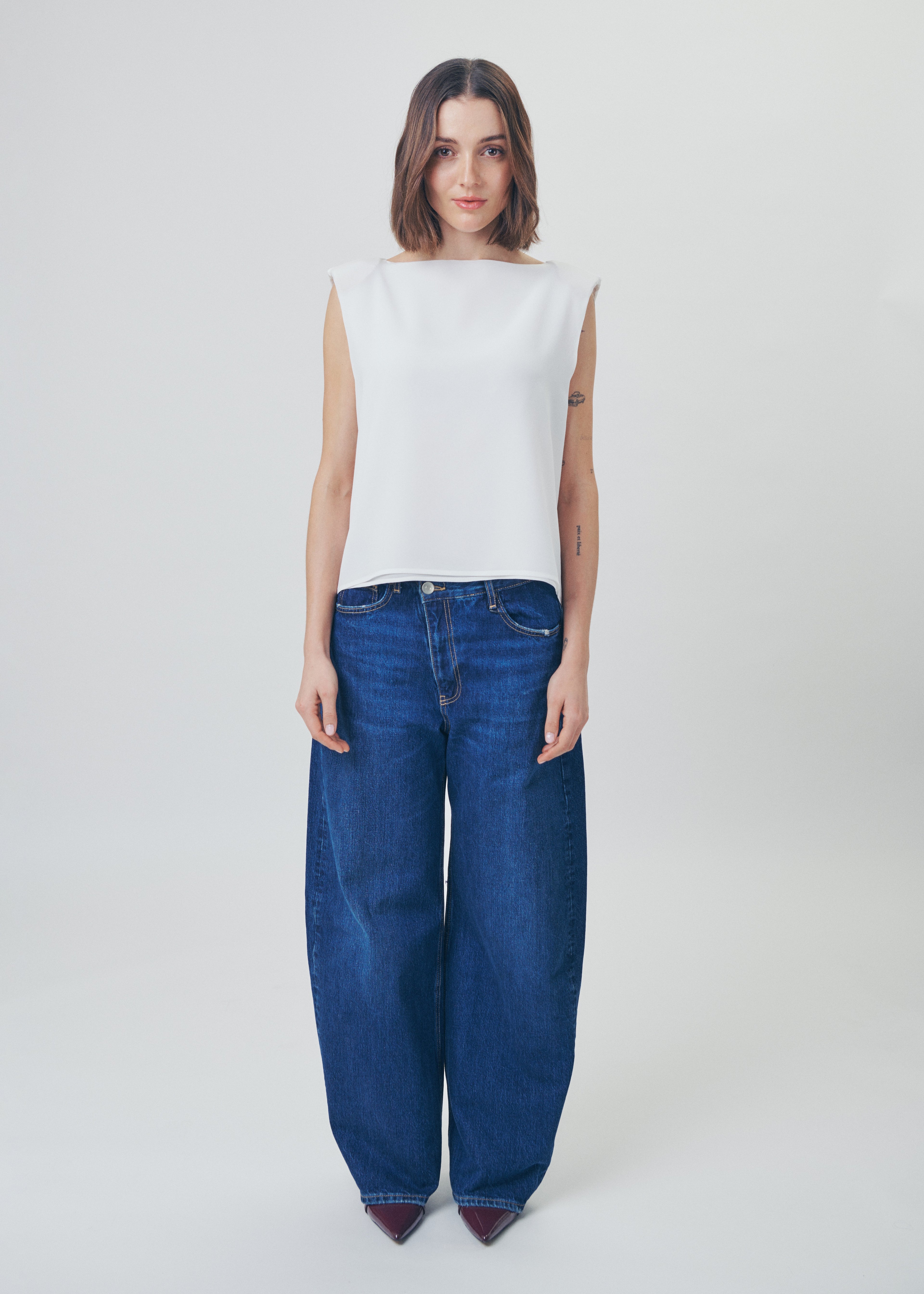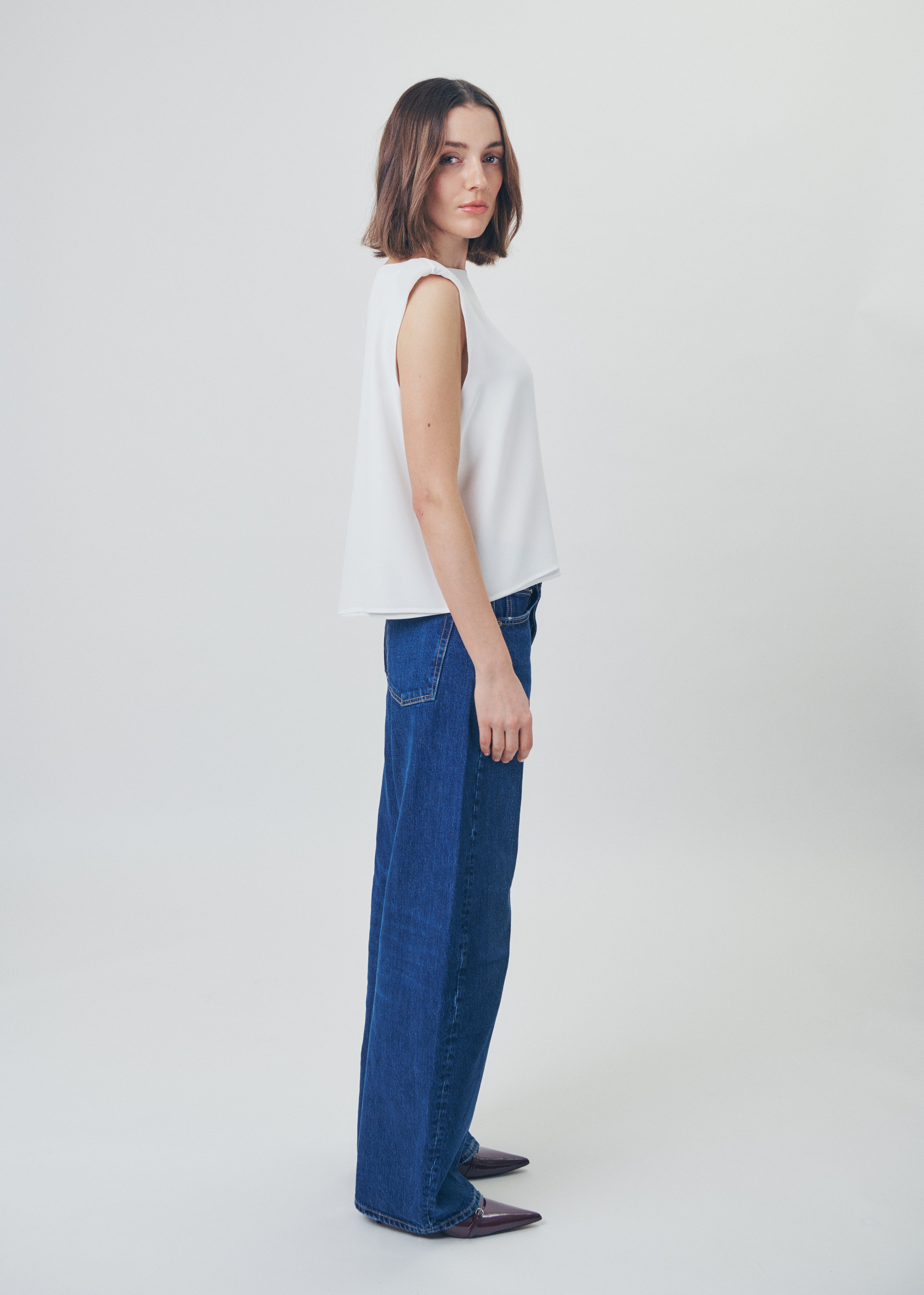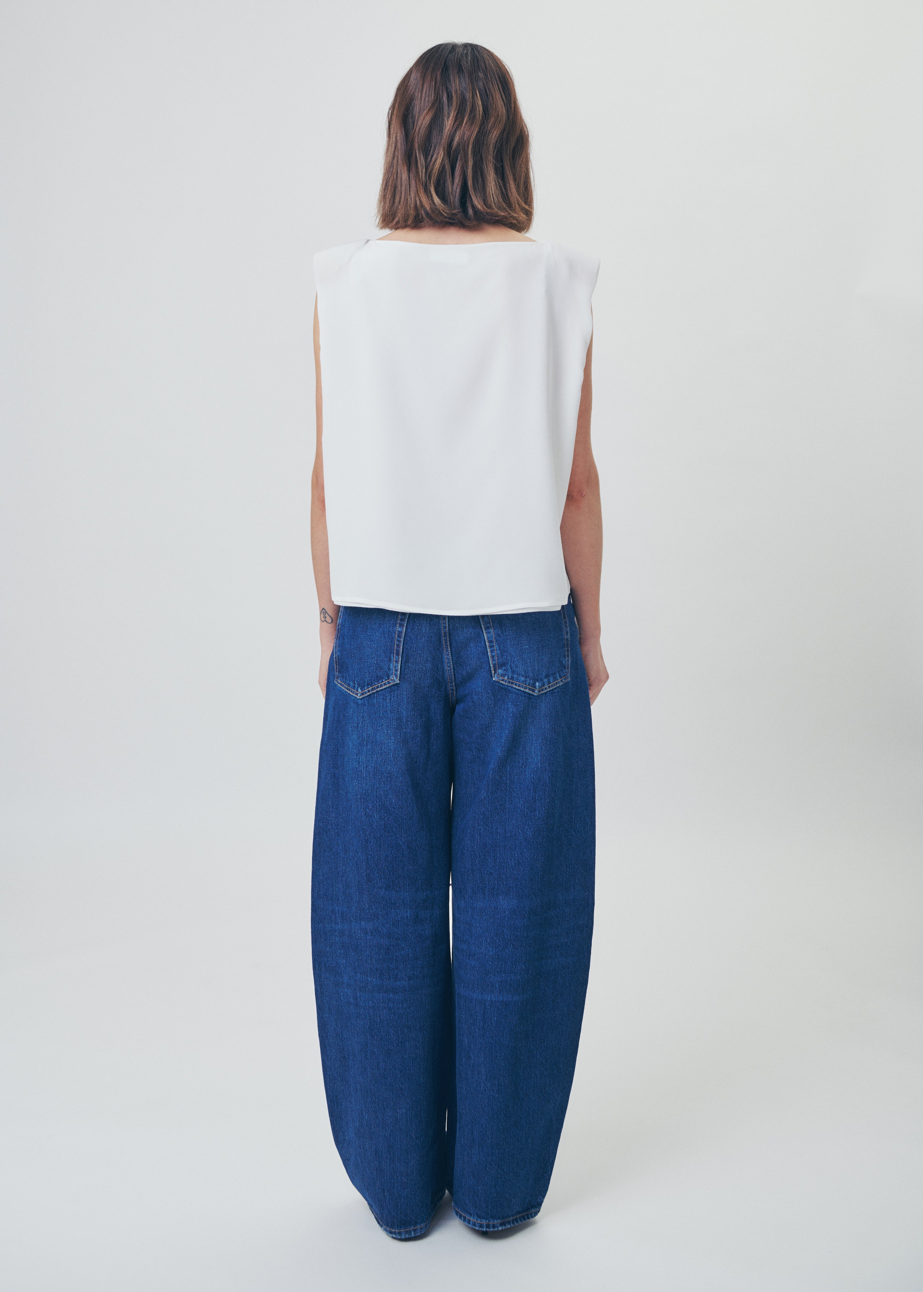This silk top combines luxury and sophistication. With shoulder pads and a striking look, it is a real it-piece.
